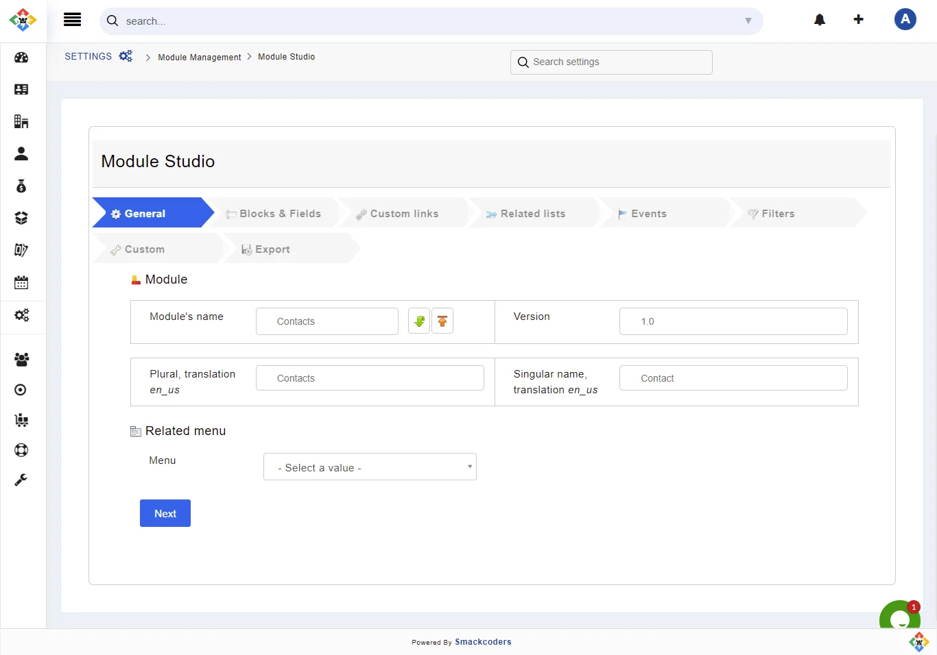 - Click on the Left SideBar → Settings → Navigate to the Module Management section → Module Studio