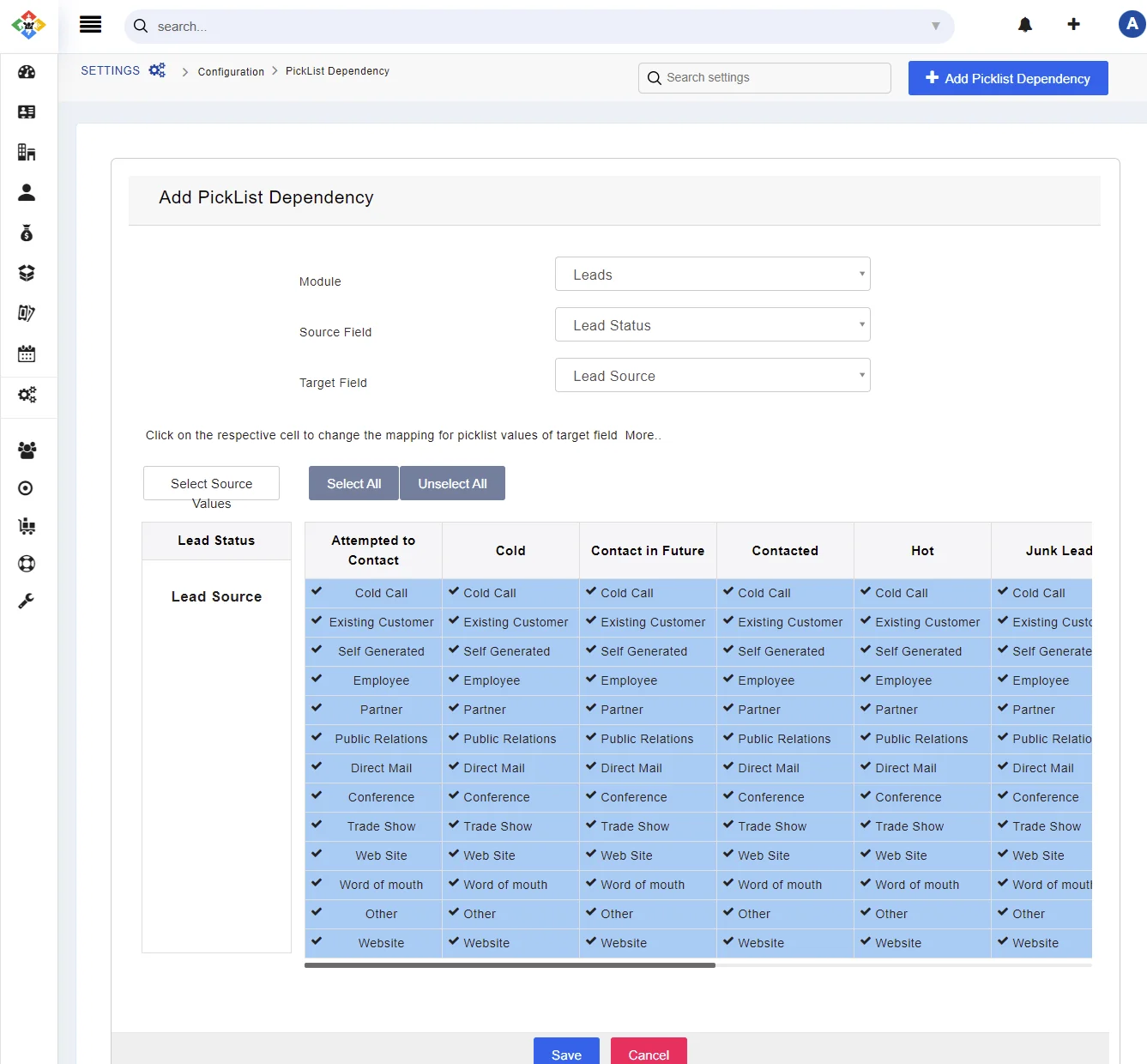 - Go to Left SideBar→ Settings → Navigate to the Configuration section → Picklist Dependency