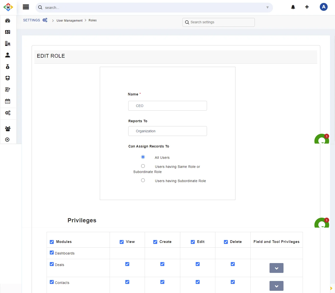 - Click on the Left SideBar→ Settings → Navigate to the User Management section → Roles