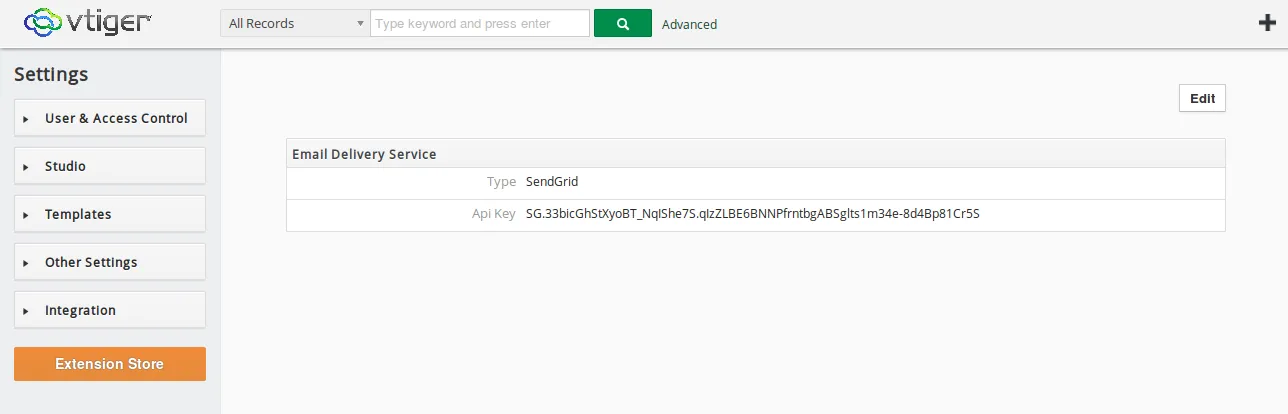 • Configure your logged-in mail address in VtigerCRM securely using an API key.