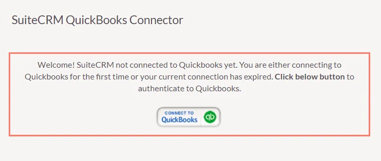 Just Click on ” Connect to Quickbooks ” to hook up your SuiteCRM and Quickbooks.