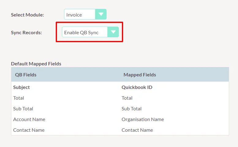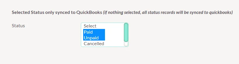 Lets you sync records from suiteCRM to Quickbooks based on invoice status. Choose your choice status to sync.