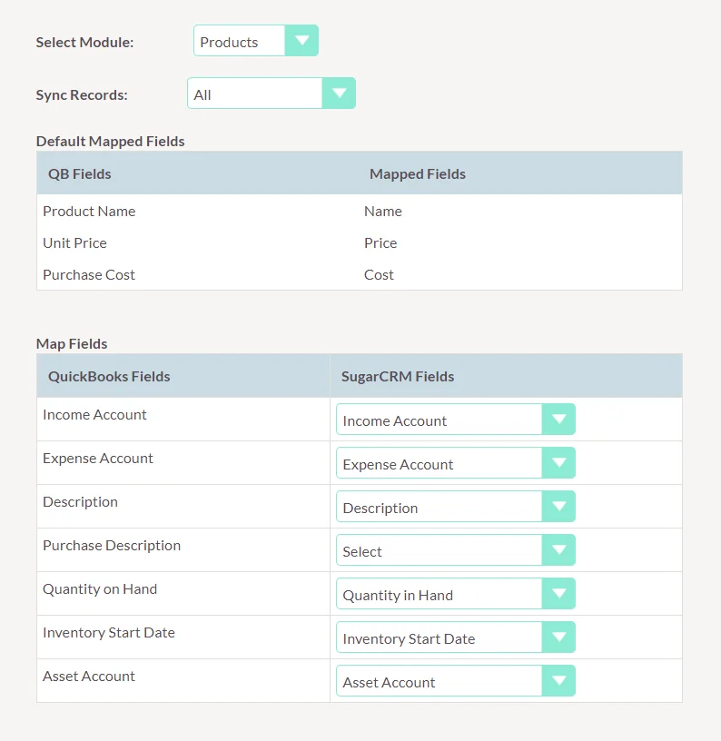 More intuitive field mapping to make QuickBooks and SuiteCRM field mapping more easy.