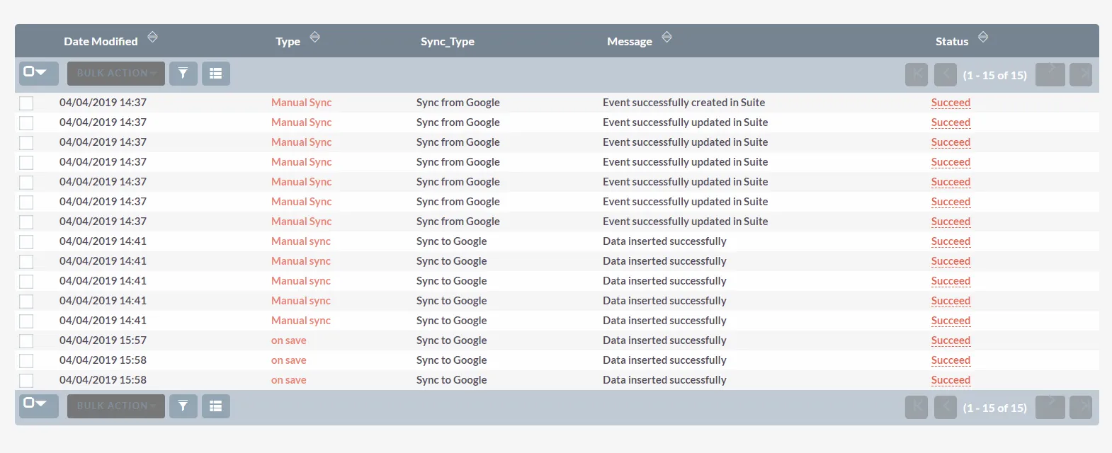 Track all the success and failure sync statuses of events on manual sync, onsave sync, and Cron sync within a single page of logs.